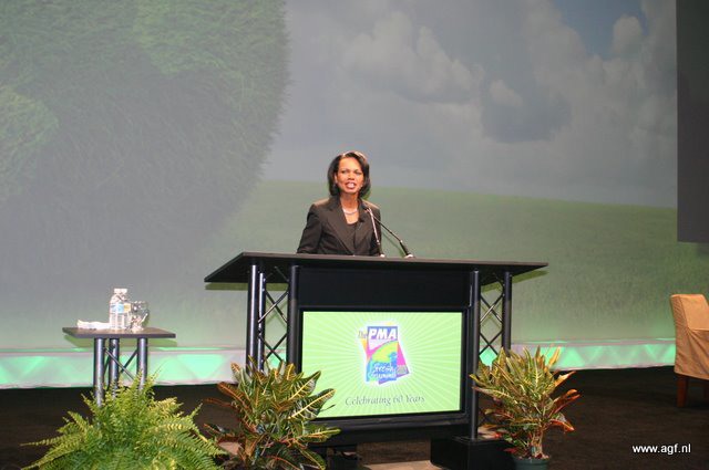 Dit jaar was niemand minder dan Condoleeza Rice uitgenodigd die een pittige lezing hield voor honderden agf-handelaren