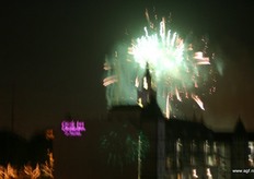 dit is de weg naar het beursgebouw. links het Hilton hotel waar velen vertoefden
