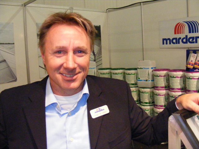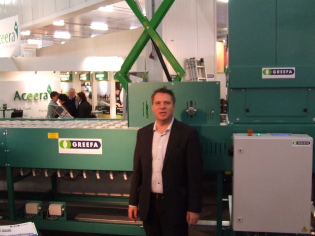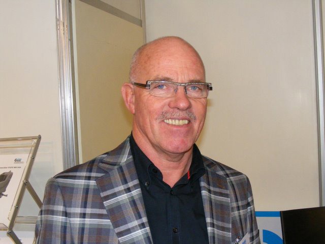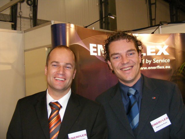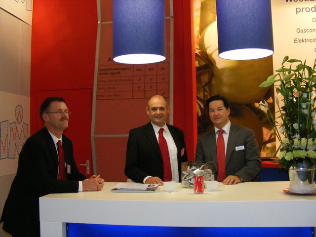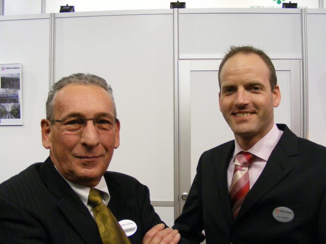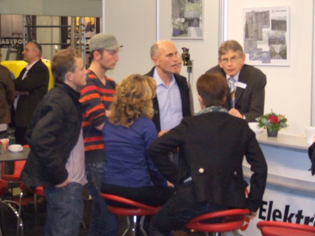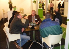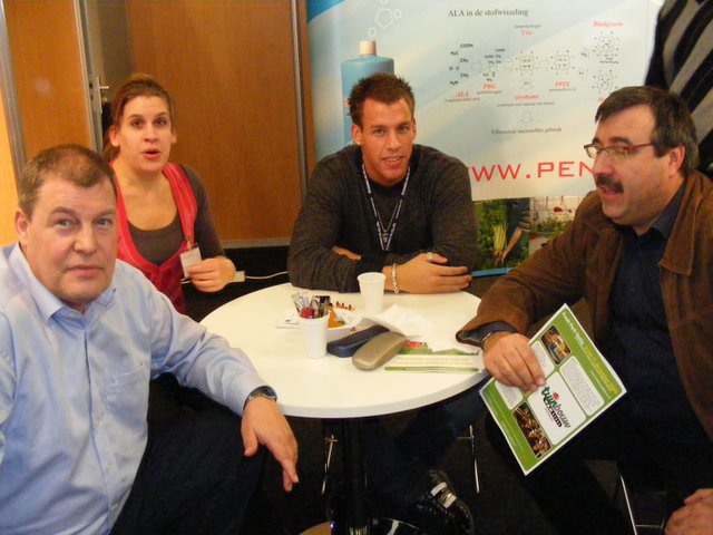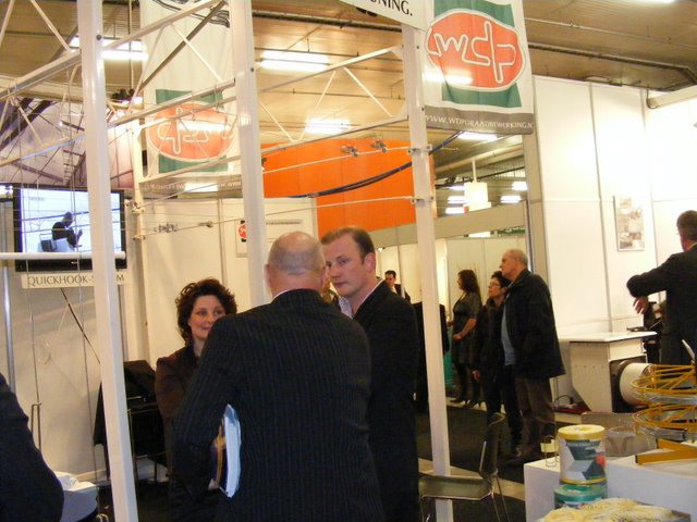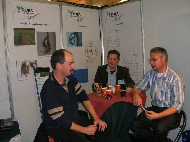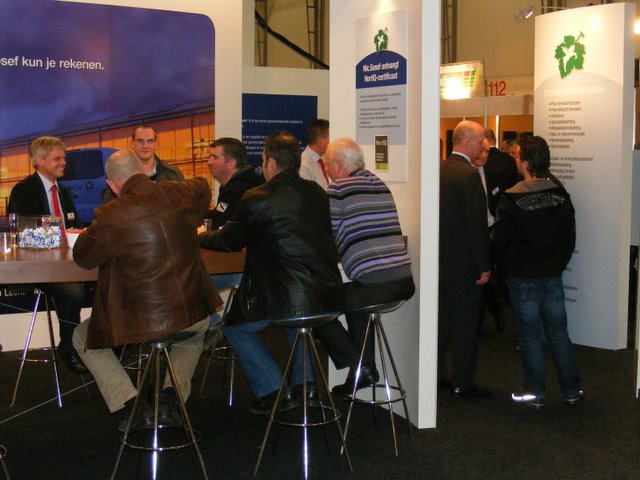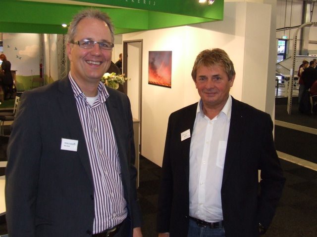 Ton Verheul van Interpolis in de stand bij Jack van Batenburg van Meegaa Substrates