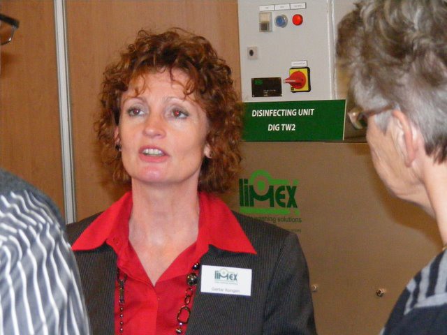 André Luyten, Wil Roodbeen en Werner van Mullekom presenteren op de beurs de modulerende lage druk UV-installatie.