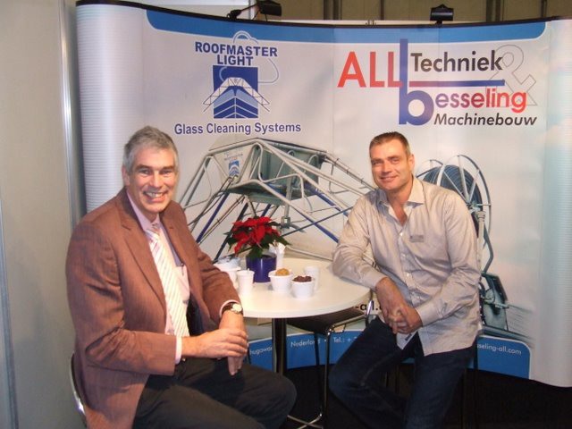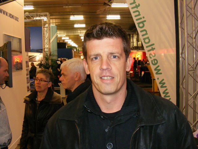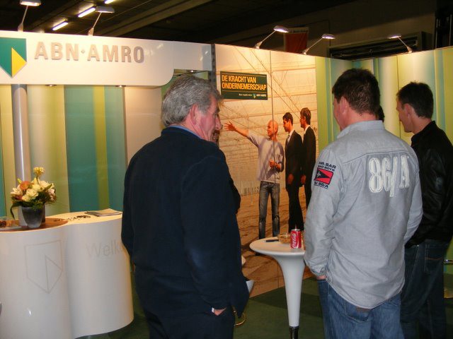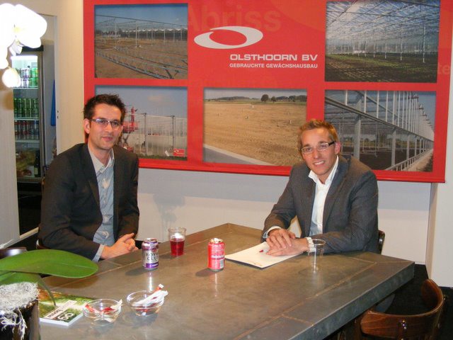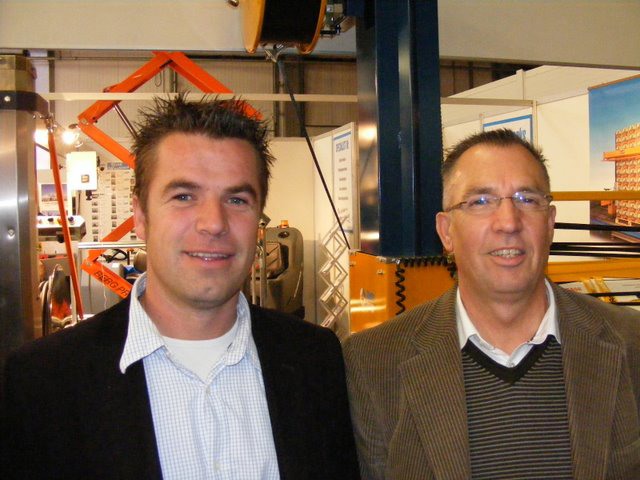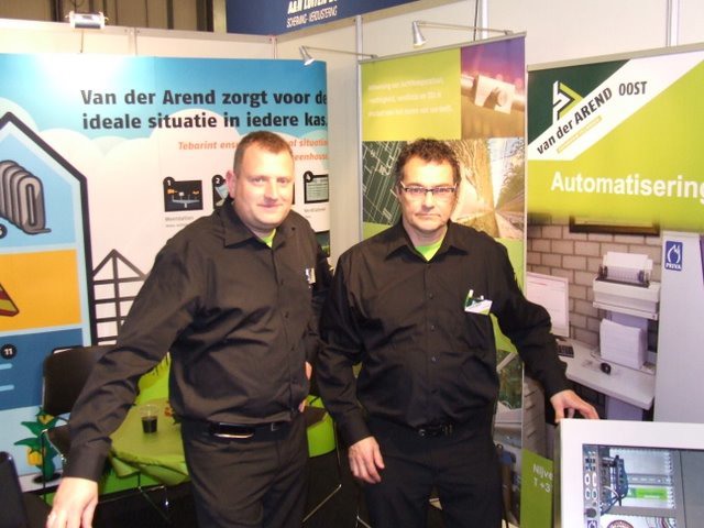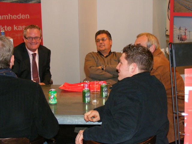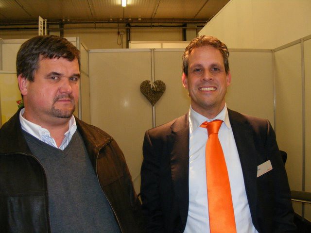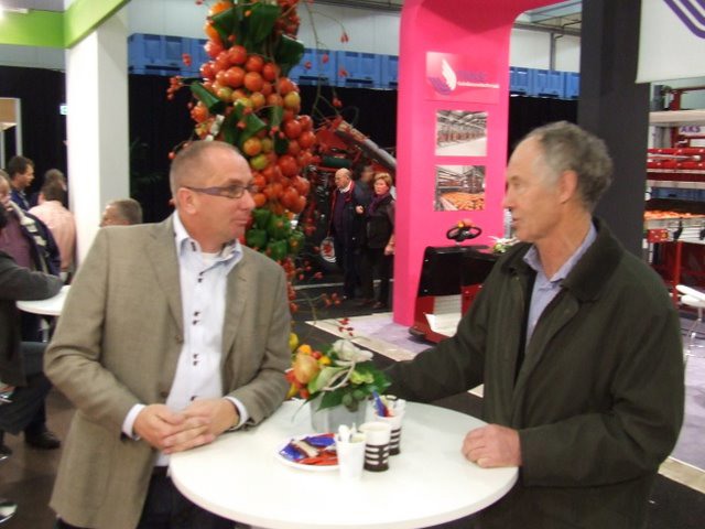 René Sleutel in de stand bij Frank van Amelsvoort van Van Amelsvoort Kassenbouw