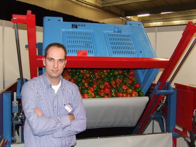 Ferry Hooymans van Horticoop demonstreert de Smart Clipper, een elektronisch handapparaat voor het oogsten en classificeren van komkommers