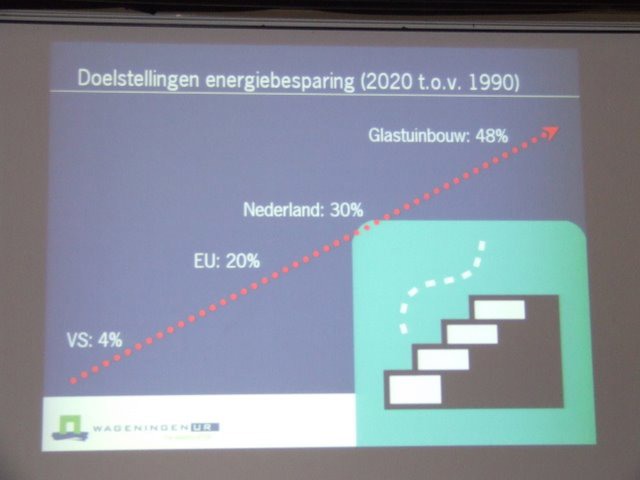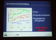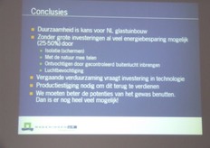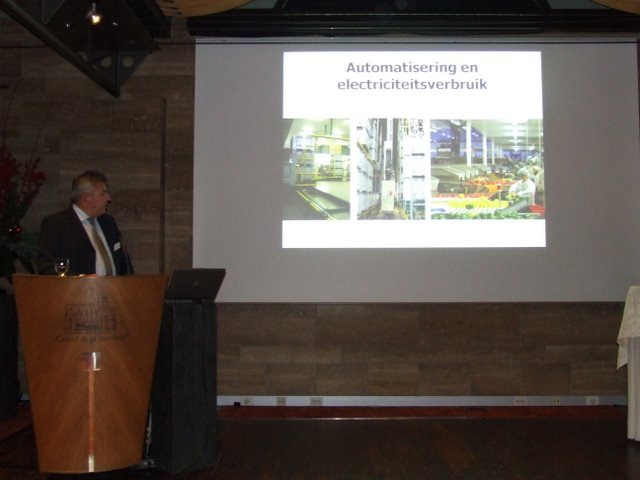 Lezing van Leo Marcelis (WUR) over de toekomst van duurzaamheid in de glasgroententeelt. Volgens Leo is er met geringe investeringen al heel wat mogelijk.