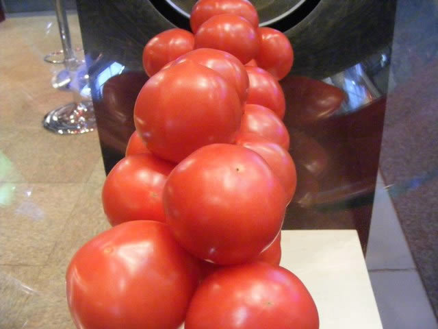 Roze tomaat Momotaro van Takii. Er is nu een 1e proef van deze meerhokkige tomaat. Deze is bestemd voor de gastronomie.
