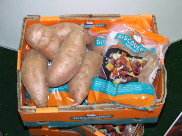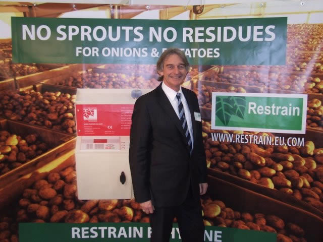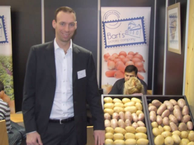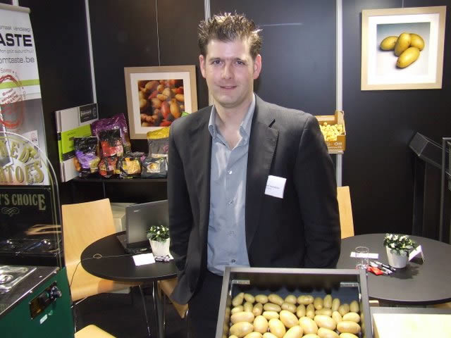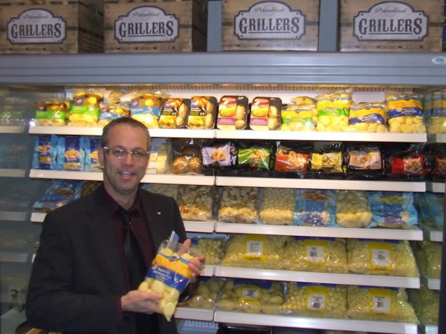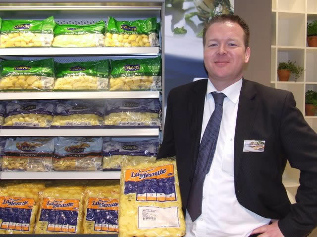 Ron Kettelaar van Celavita toont de nieuwe La Menute aardappelen. Deze zijn volledig gegaard en op juiste temperatuur 45 dagen houdbaar.