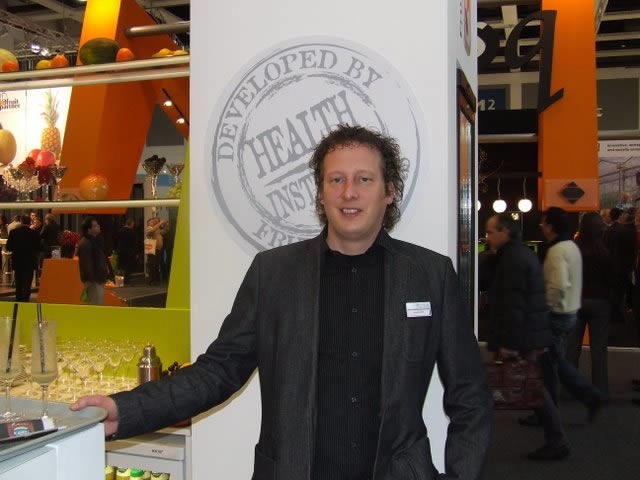 Jan van der Mey heeft het voor elkaar gekregen dat Kees van den Bosch reclame maakt voor Peakfresh in de stand van Freeland.