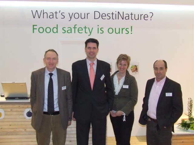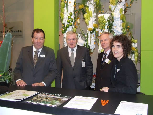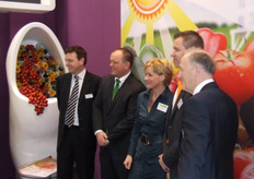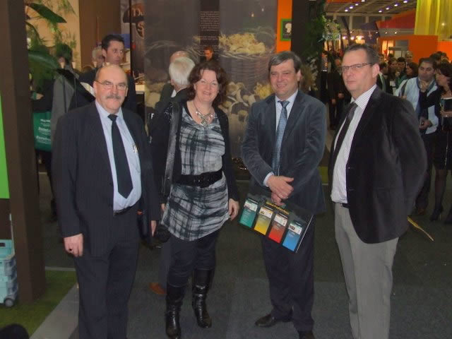 Willem Baljeu, Wim Tacken, Leo Welschen en Wilma van den Oever bemannen de Frugi Venta stand