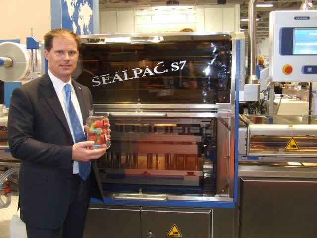 Marcel Veenstra van Sealpac voor de nieuwste sealmachine.
