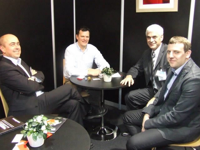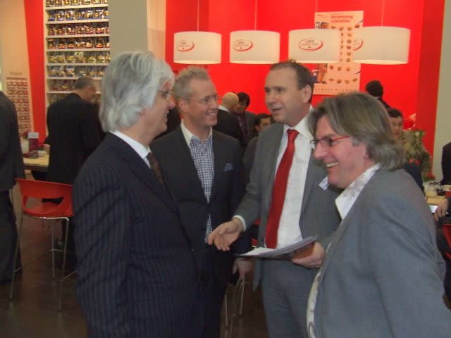Hens Huiskens, Arda van Heumen, de nieuwe commercieel directeur Max Vos en Peter van Heumen van Hamu. Peter bedankt iedereen voor het meeleven en de positieve reacties die hij van branchegenoten kreeg tijdens zijn ziekte.