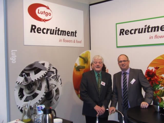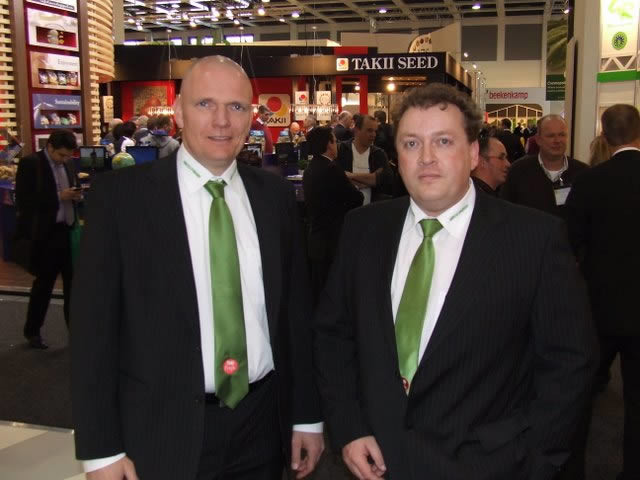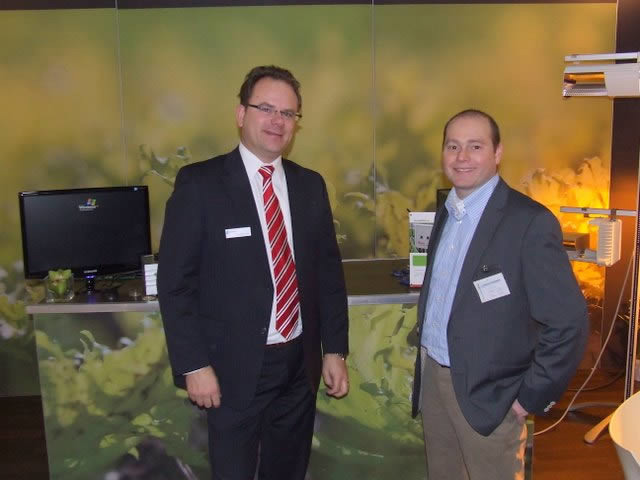 Jan-Willem Lut (Sercom) met zijn collega Donkers van het bedrijf Voets en Donkers. Net als op de Horti Fair deelden ze samen met Grow Technology de stand