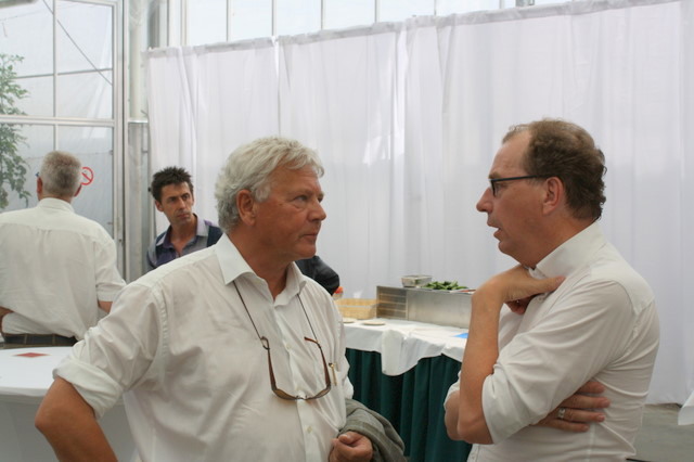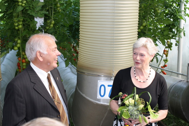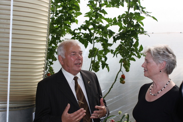 Aad Jonker en demissionair van der Hoeven in de tomatenkas