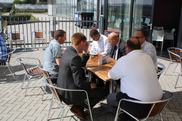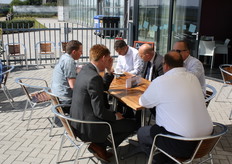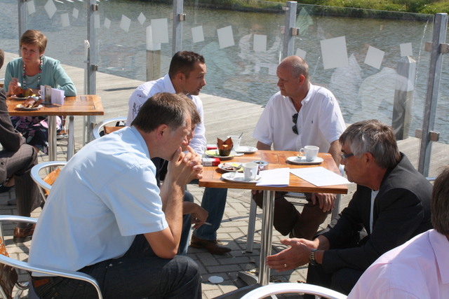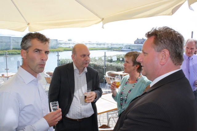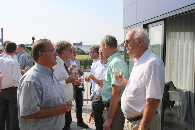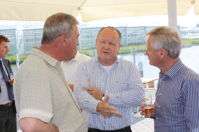 Frans van den Boom, Peter Sierat en Ben van Zeijl praten na.