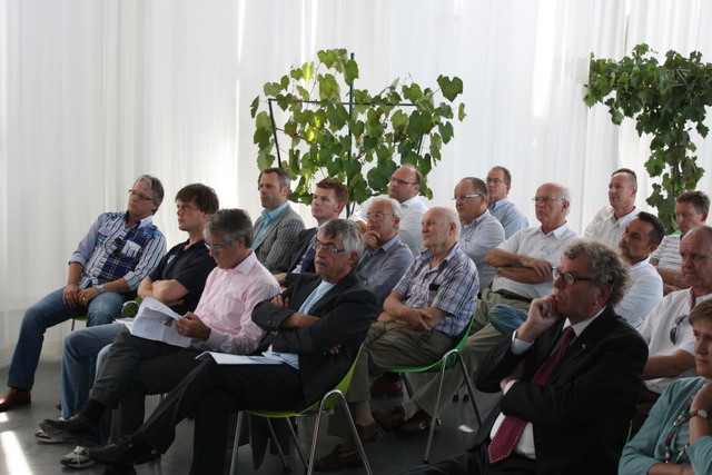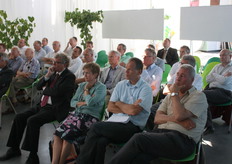 Aandachtig publiek met op de eerste rij Aad van Daalen, Henriëtte Hoogstad, Rinie Huijbregts en Arie Middelburg