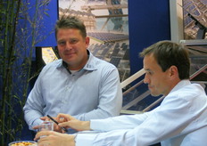 Harm Maters van Greenport Holland International en Coen van Ruiten. GHI is de organisatie die de Nederlandse bedrijven, kennisinstellingen en overheden uit het greenportcluster ondersteunt door nieuwe vormen van samenwerking te vinden om zo de groei op de wereldmarkt voor tuinbouwprojecten optimaal te benutten.