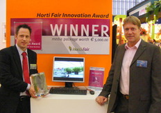 Mark Fikkers en RenƩ Verbraeken van Berg Product. Ze wonnen de Horti Fair Award met de Berg Band. Gefeliciteerd!