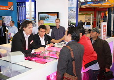 Chris Noordam vertelt in de stand van Viscon over de mogelijkheden van slateelt op water.