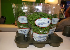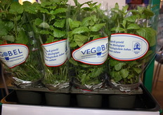 Peter Marteijn van D-Grade Bio, onderdeel van Desh Plantpak, toont bij de bio-afbreekbare kruidenverpakkingen.