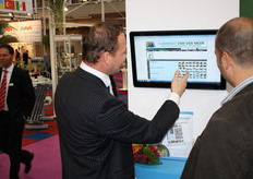 Stefan Stolk van Flamingo van der Meer toont het aanbod gebruikte tuinbouwmachines aan Edwin Dijkshoorn van Grow-Tech
