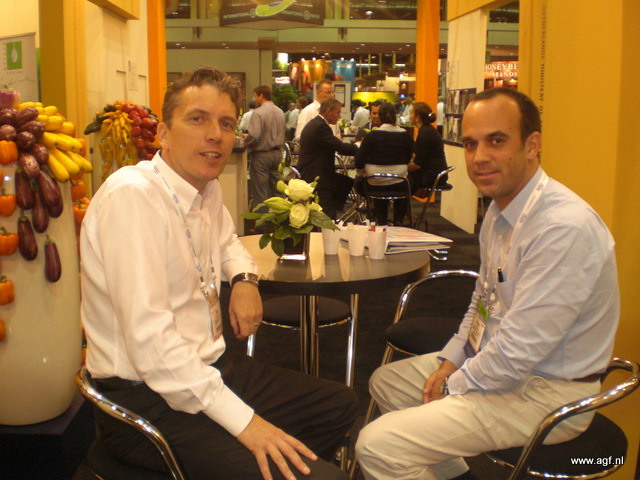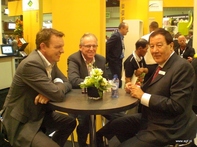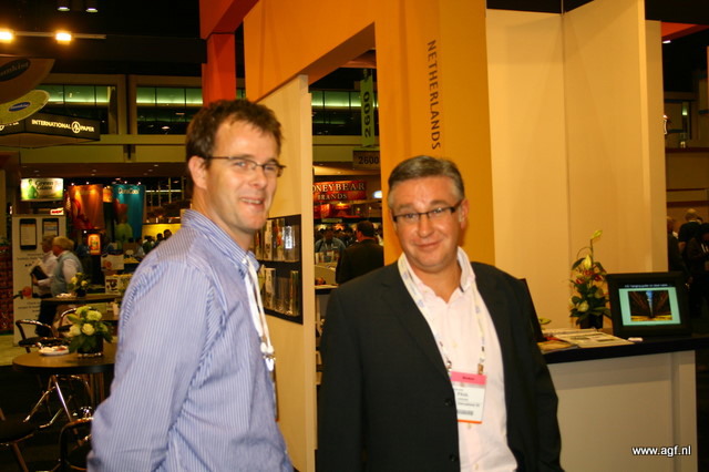 ineens waren er een boel Hollandse telers in de HFG stand Johan Groenewegen en Jan Zegwaard met Jos