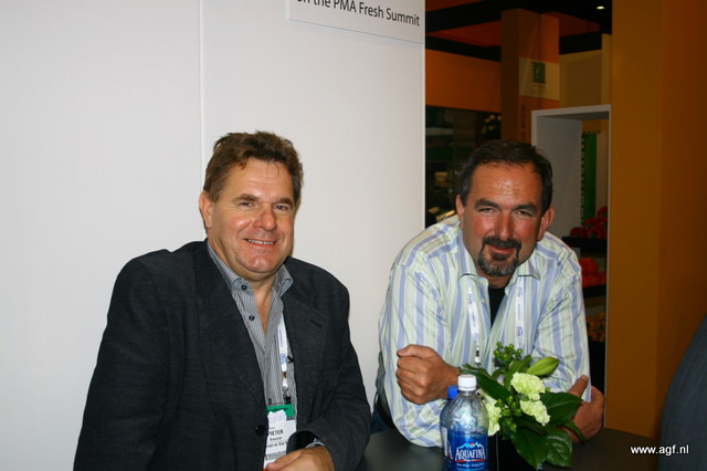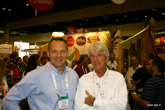 Wolter van der Kooij en Koen Bos van Fyffes. De avond ervoor hadden ze het 40 jarig jubileum van Turbana uitbundig gevierd.