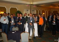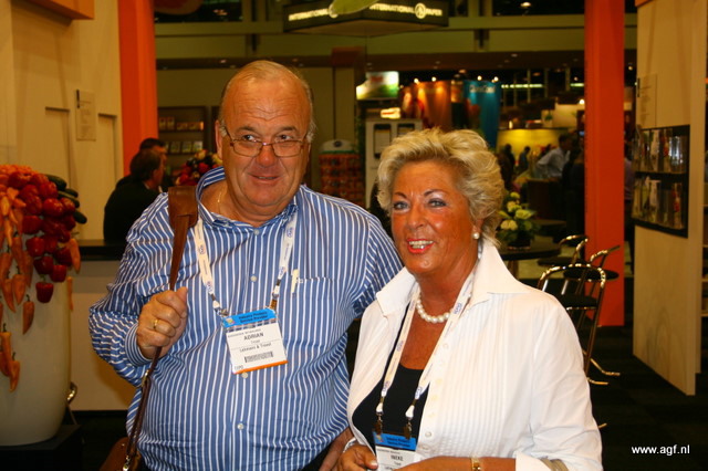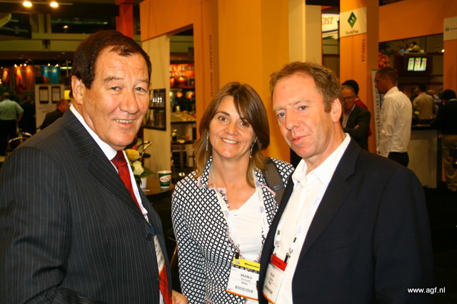 Jan Engelen en zijn voorzitter van veiling Hoogstraten Dirk van den Plas en zijn vrouw. Dirk heeft naast zijn bedrijf in Belgie ook een teeltbedrijf in de buurt van New York van 25 ha; Intergrow.