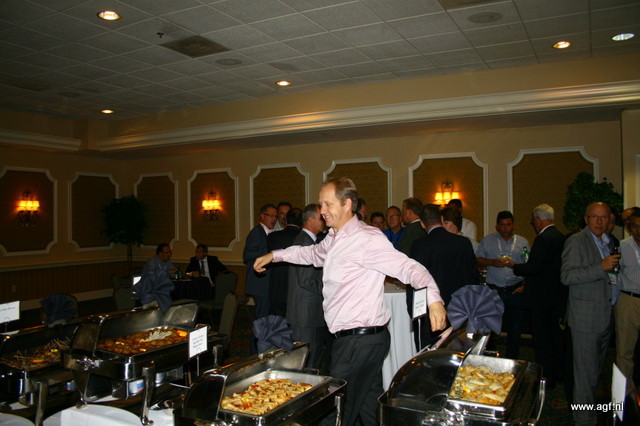 Standhouders en bezoekers van de PMA komen naar de Nederland receptie