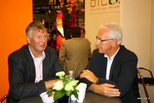 Volkert Engelsman en Henk Zoutewelle. Eosta had dit jaar geen ruimte in de HFG stand geboekt