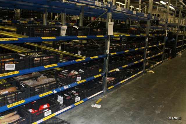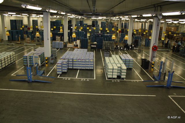 Natuurlijk ook veel zuivel in het magazijn. Wekelijks gaat er zo'n miljoen colli door het warehouse waarvan 20% AGF.