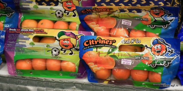 en bij Sunkist hebben ze speciale verpakkingen voor kinderen gemaakt met daarin klein fruit