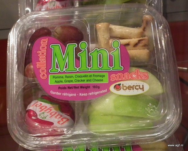 maar dat kan ook met een mini kaasje en druiven en appelschijfjes