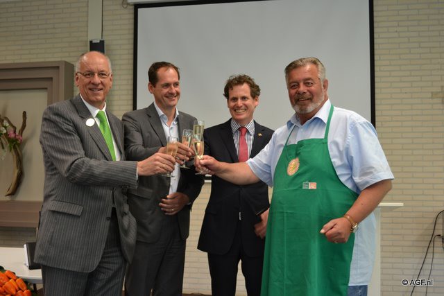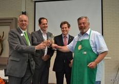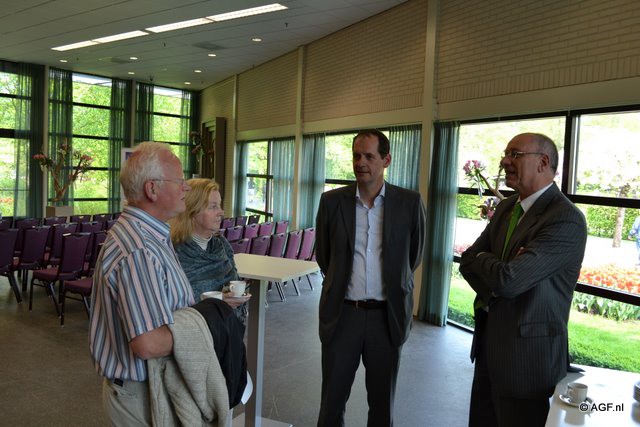 Theo Ammerlaan en zijn vrouw, Jack Stroeken en directeur Piet de Vries van de Keukenhof.