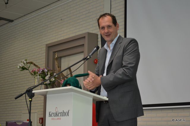 Piet de Vries vertelt de aanwezigen over De Keukenhof