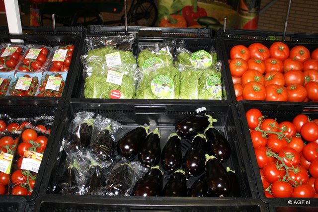 Enza Zaden presenteerde een schap met tomaten, komkommers, aubergines, paprika's en sla