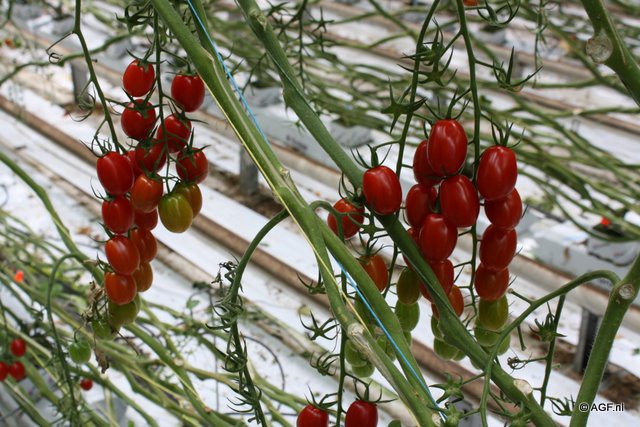 Van de troscherrytomaat E.15C.400.52 blijven ook de onderste vruchten mooi rood