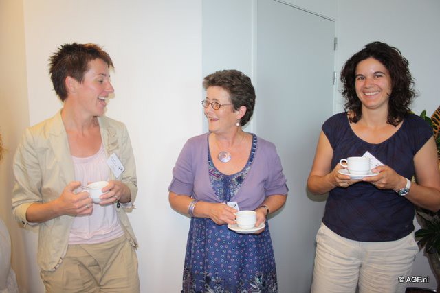 Mariska Werring, Lydia Duijvestein en Karina van de Goor genieten bij het ontvangst van een lekkere kop koffie/thee.