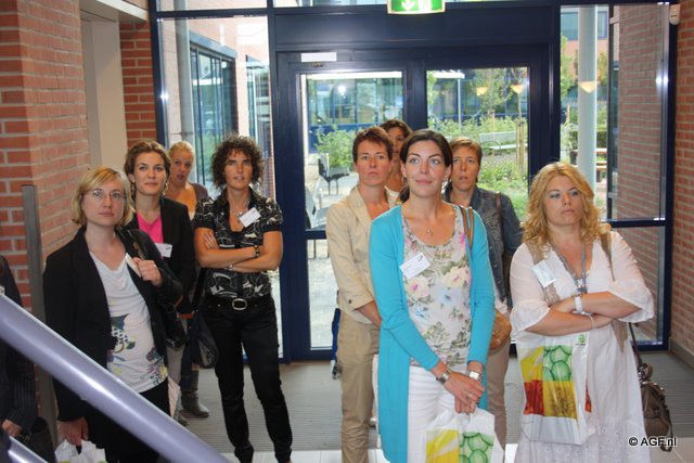 Er wordt aandachtig geluisterd naar Bauke. Zij gaf een rondleiding langs de verschillende labs