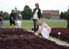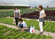 Bauke snijdt kroppen sla voor de vrouwen die er een mee wilden nemen.