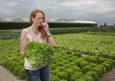 Silvia van den Aardweg van GroentenFruitBureau proeft de sla.