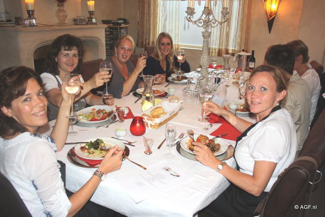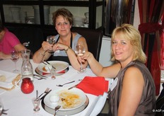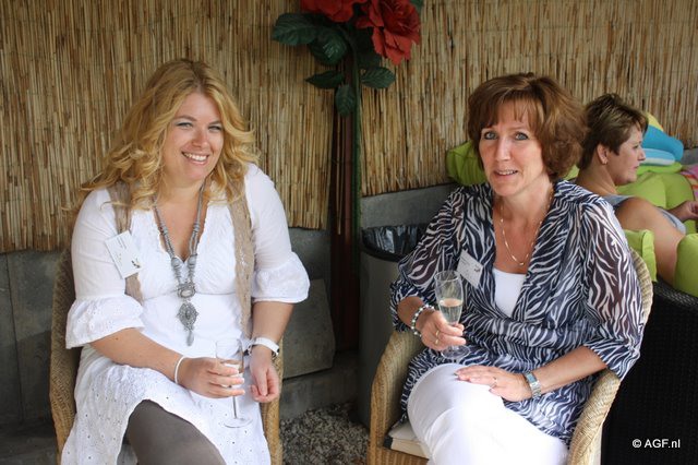 Genieten van de champagne! Linda Barzilay en Marjolein v.d. Berg van Combilo.