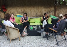 Marina Jansen-van Arkel en Janny van Arkel in gesprek met Miriam Lanfermeijer-Kooij (Kooij Antwerpen bvba).