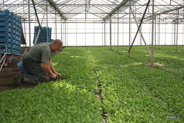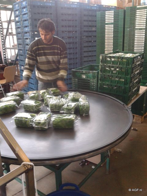 Een andere teler: Brovo Bvba. Bij dit bedrijf wordt de veldsla geoogst, gewassen en kleinverpakt.