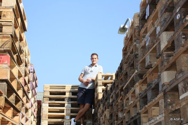 Aram Troost had van zijn pallets een uitkijktoren gemaakt