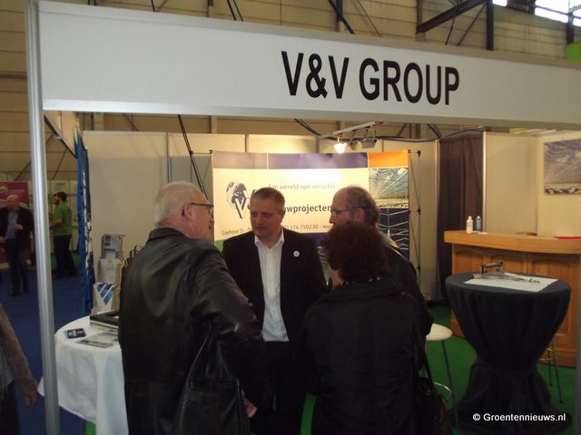 De stand van Hagelunie is goed bemand met verschillende tussenpersonen/makelaars.