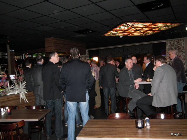 Volle bak, het leek of het hele centrum naar de borrel kwam
