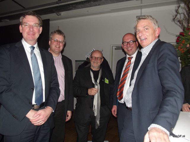 De delegatie van de toekomst van de Floriade: V.l.n.r.: Wouter Weyers (KvK), Hillebrand Koning (Provincie Flevoland), Ad Berends (GroentenFruitBureau) Jeroen Lubbers (Gem. Almere) en Henk Weyschede (Gem. Almere)