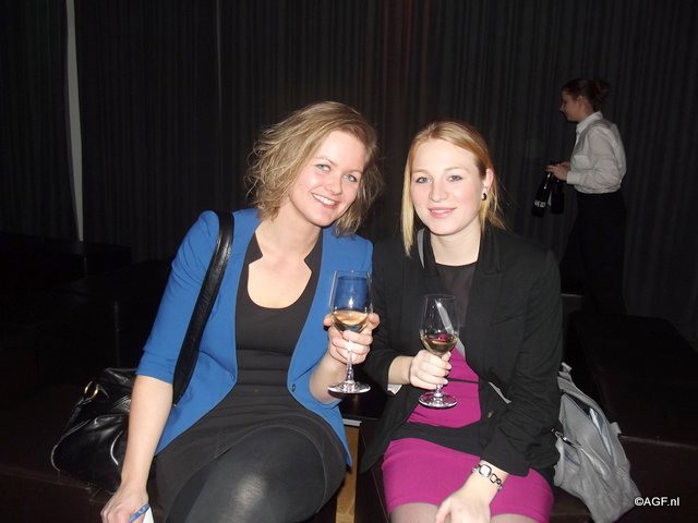 Naast foto's maken hadden Gertrude Snoei en Kelly den Herder van AGF.nl en AGF Primeur nog heel even tijd voor een wijntje
