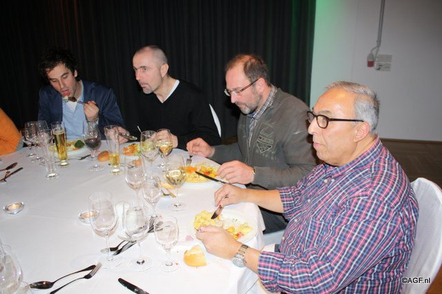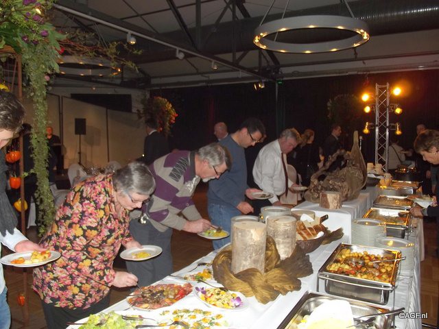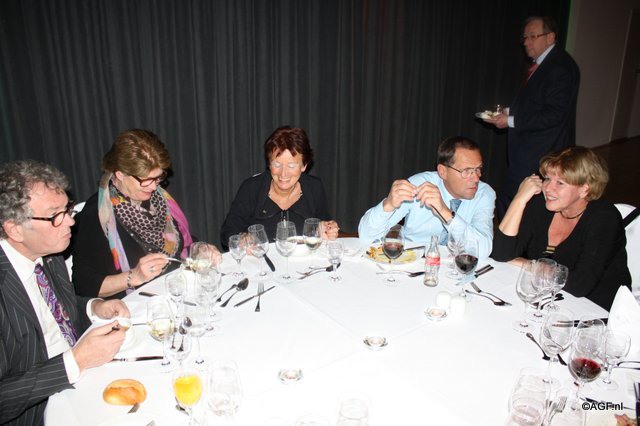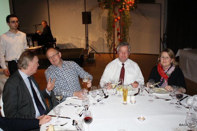 Aad van Daalen en Rob Mulder met eega's en Corrie Visbeen