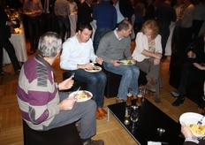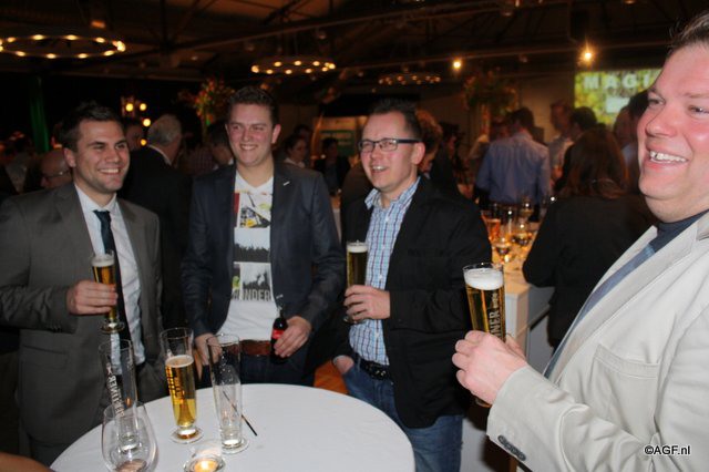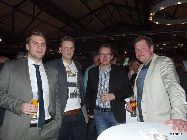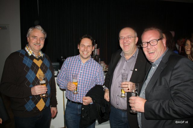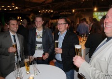 Bankier aan het bier: De mannen van Rabobank Westland genieten zichtbaar. V.l.n.r: Kees de Jonge, Peter de Bruin, Joost Verheijen en Marcel Eek