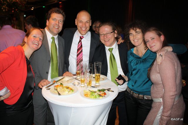 Maar natuurlijk wel even goed poseren: Bauke van Lenteren, Vincent van Wolferen, Jan Doldersum, Wilma van den Oever en Dewi van der Wal