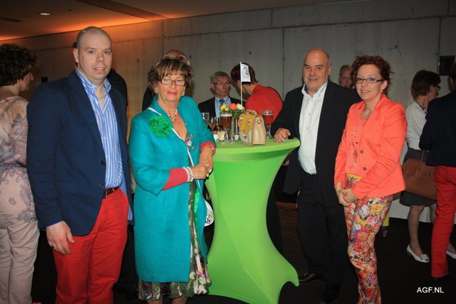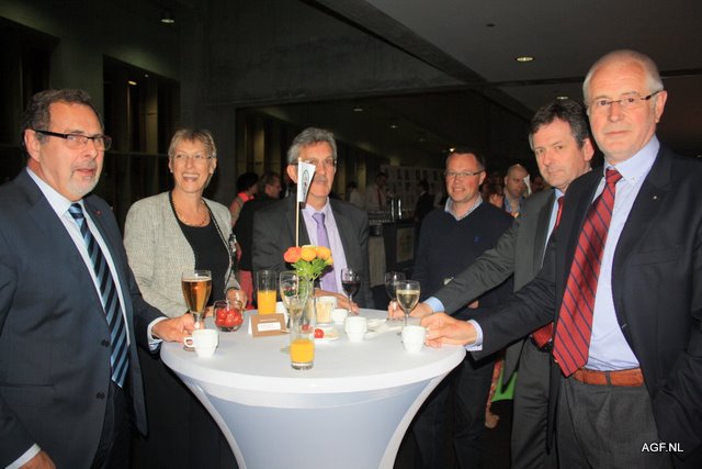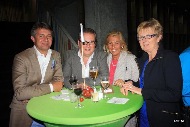 Links Rita Demaré (voorzitter van de REO Veiling) met haar man en rechts teler Paul Demyttenaere en echtgenoot
